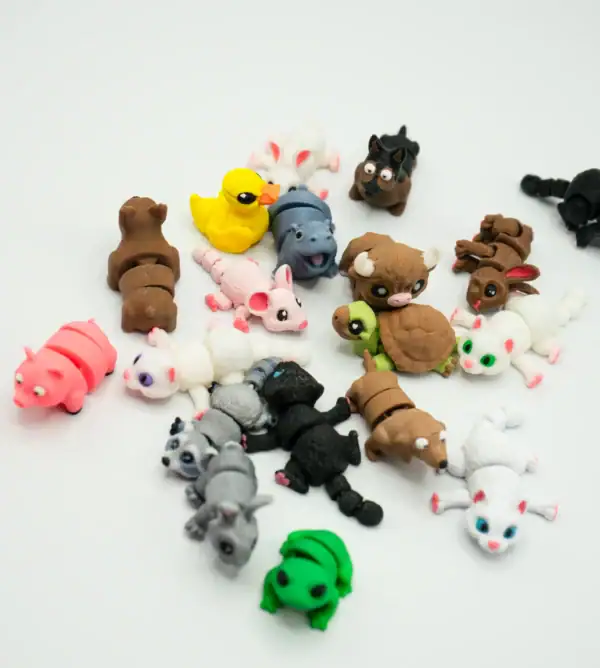 These 3D printed articulating mini fidget sensory toys are perfect for summer fun, bath time, desks, party favors, road trips, classroom gifts, sensory play, and fidgeting. These items are fully 3d printed out of colored PLA .(a safe biodegradable material)