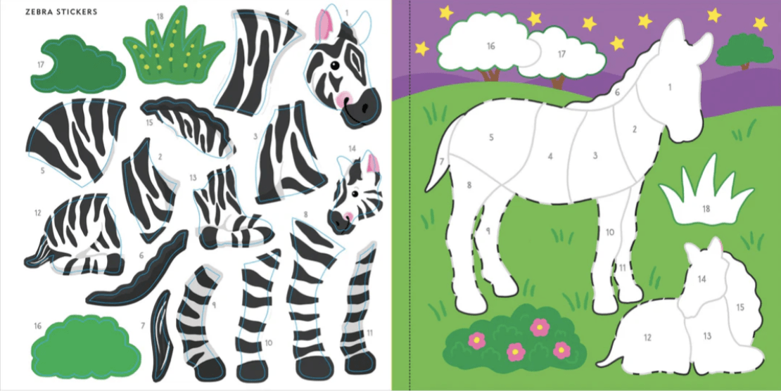 • Simply place each numbered sticker on the matching number of each picture.